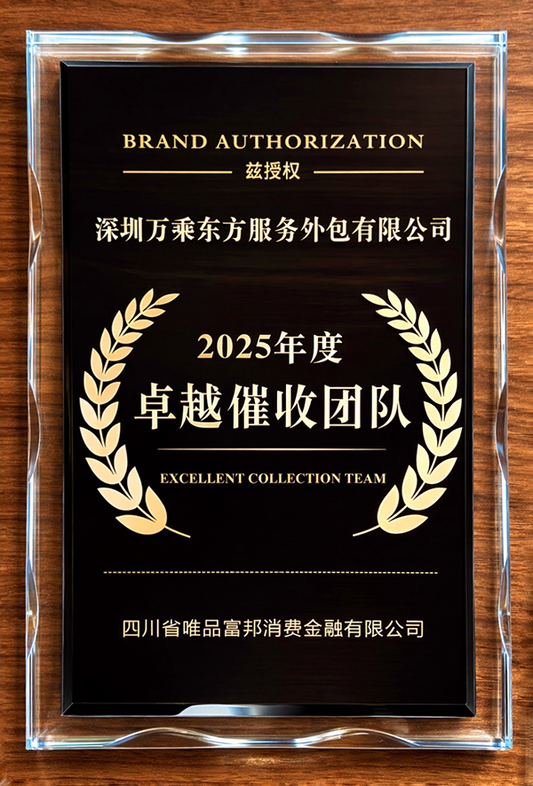 春节的喜气尚未散尽,又从天府之国传来喜讯:3月2日,万乘东方集团被四川唯品富邦消费金融公司授予“2025年度卓越催收团队”奖牌。