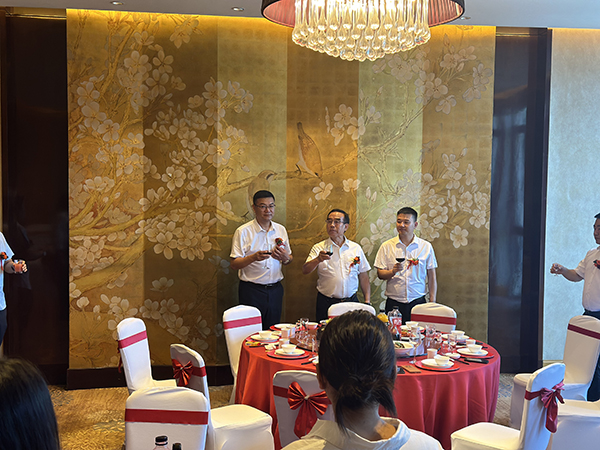 揭牌仪式结束后,韩总裁在合肥富力威斯汀大酒店筵开4席,款待全体员工和各位嘉宾。在嘉宾签名和拍完“全家福”后,宾主共同举杯,祝安徽分公司开业大吉,财源广进,业绩长红!