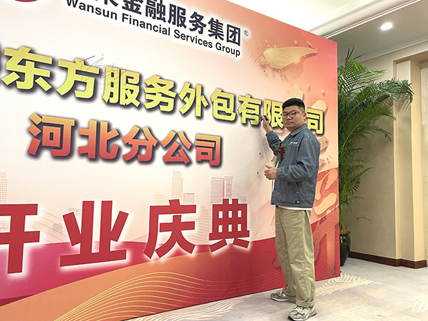 2024年11月10日上午吉时,在飘飞的礼花中,在热烈的掌声和欢呼声中,万乘金融服务集团创始人/CEO/总裁韩晓、万乘集团董事会秘书刘润东、万乘集团副总裁/万乘东方集团法人代表崔明绪、浙江东岸资产管理公司委外负责人司徒豪杰、河北分公司副总经理董昌峰共同揭下覆盖在形象墙上的红绸布,预示着河北分公司开始正式运营,踏上新的征程!